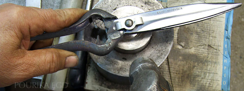 Chaque outil de main ne requiert pas seulement une fabrication simple mais aussi la mise en œuvre technique. Cette dernière est basée sur la connaissance et l'expérience. Chaque paire de ciseaux fabriquée par la société “POURIKA EGD” est testée et adaptée à la main.